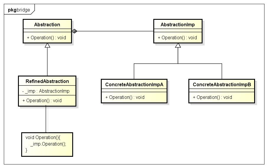 ConcreteAbstractionImp,实现具体的Operation - 定义一个接口